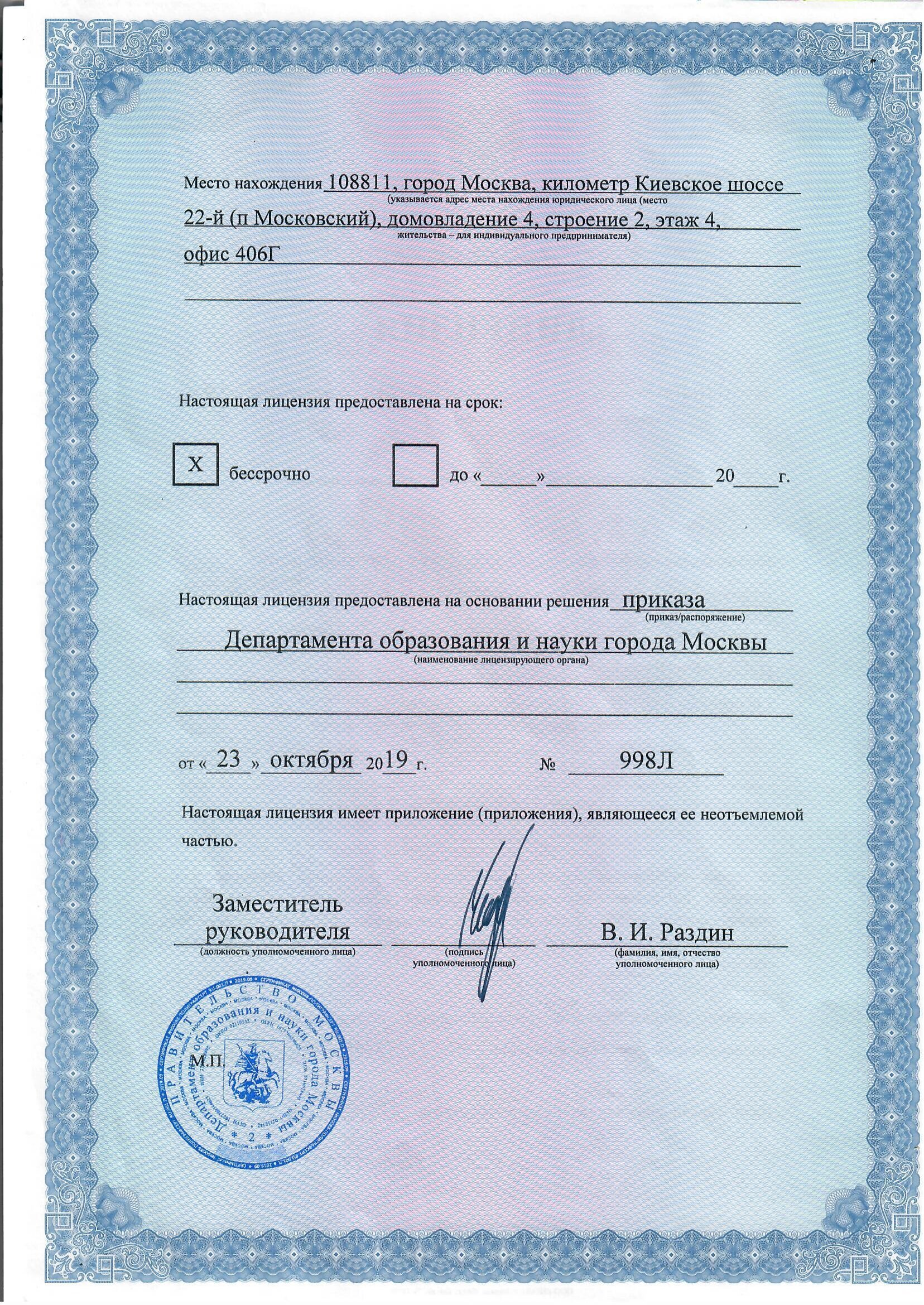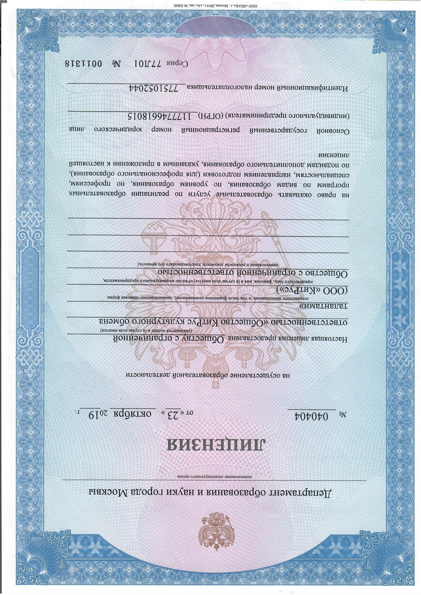 Образовательная деятельность в ООО "КитРус" ведется на основании государственной лицензии №040404 от 23 октября 2019 г.